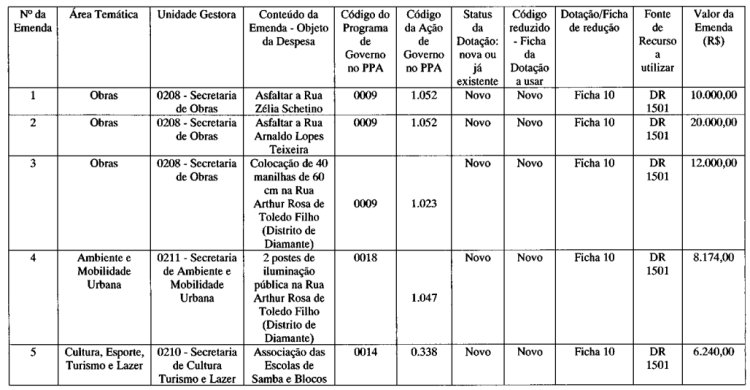 O direcionamento das verbas se dá por meio de projetos de emendas específicas dos vereadores e o Poder Executivo verifica a viabilidade da execução e é obrigado a cumprir aquilo que foi determinado pelo parlamentar.