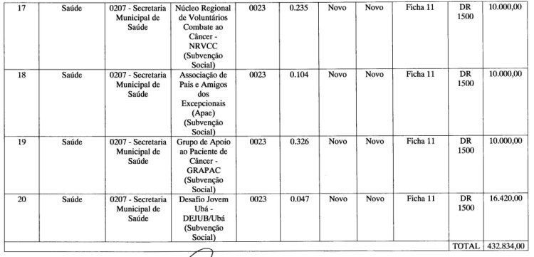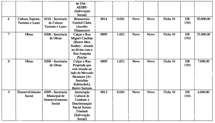 Veja no quadro abaixo, o Anexo das Emendas Impositivas Individuais da Câmara Municipal de Ubá, referente a Lei Orçamentária de 2023 apresentadas pelo Vereador Gilson Fazolla Filgueiras