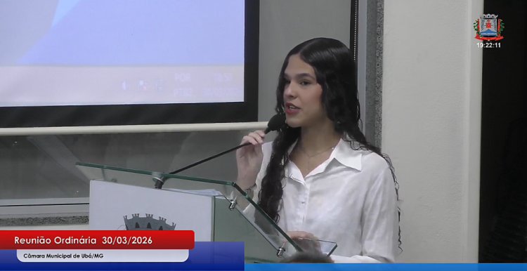 Durante a reunião ordinária da Câmara Municipal de Ubá, realizada na noite desta segunda-feira, 30 de março, a diretora da Escola do Legislativo, Juliana Jacob, utilizou a tribuna para apresentar oficialmente o lançamento da edição 2026 do Parlamento Jovem Minas no município.