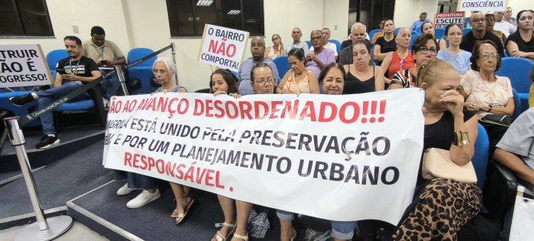 Durante a fala, o advogado listou uma série de problemas estruturais que, segundo ele, já afetam o bairro e que seriam agravados com o aumento populacional: