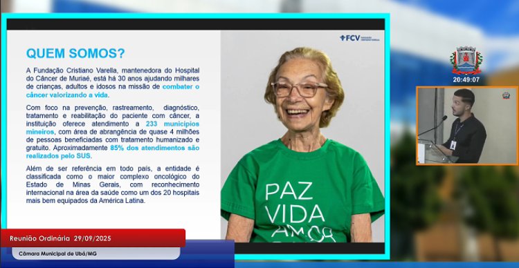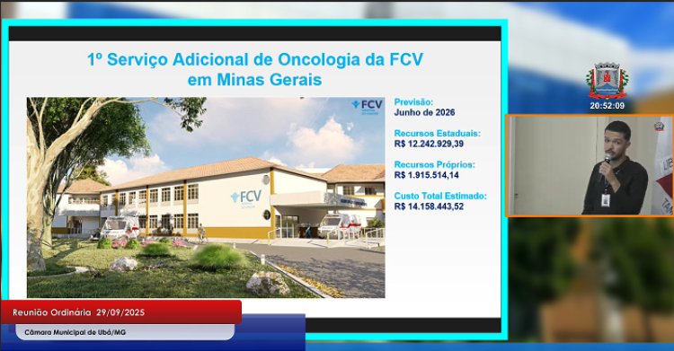 Na reunião ordinária da Câmara Municipal de Ubá desta segunda-feira, 29 de setembro, o senhor Rubens, representante da Fundação Cristiano Varella (FCV), utilizou a Palavra Livre para expor os avanços da instituição, apresentar detalhes sobre a construção da filial em Ubá e solicitar apoio dos vereadores por meio de emendas impositivas.